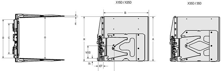 Capacity 承載能力(kg) | Catalog Order NO 型號(hào) | Mounting Class 安裝等級(jí) | Opening Range張臂范圍(mm) | Arm Height臂高A(mm) | Arm Length臂長(zhǎng)B(mm) | Vertcial Center Of Gravity垂直重心VCG(mm) | Load Center載荷中心(mm) | Overall Width總寬D(mm) | Hook Spread上鉤外側(cè)間距(mm) | Weight 自重(kg) | Effective 失載距ET(mm) | Horizontal Center of Gravity 水平重心CGH(mm) |